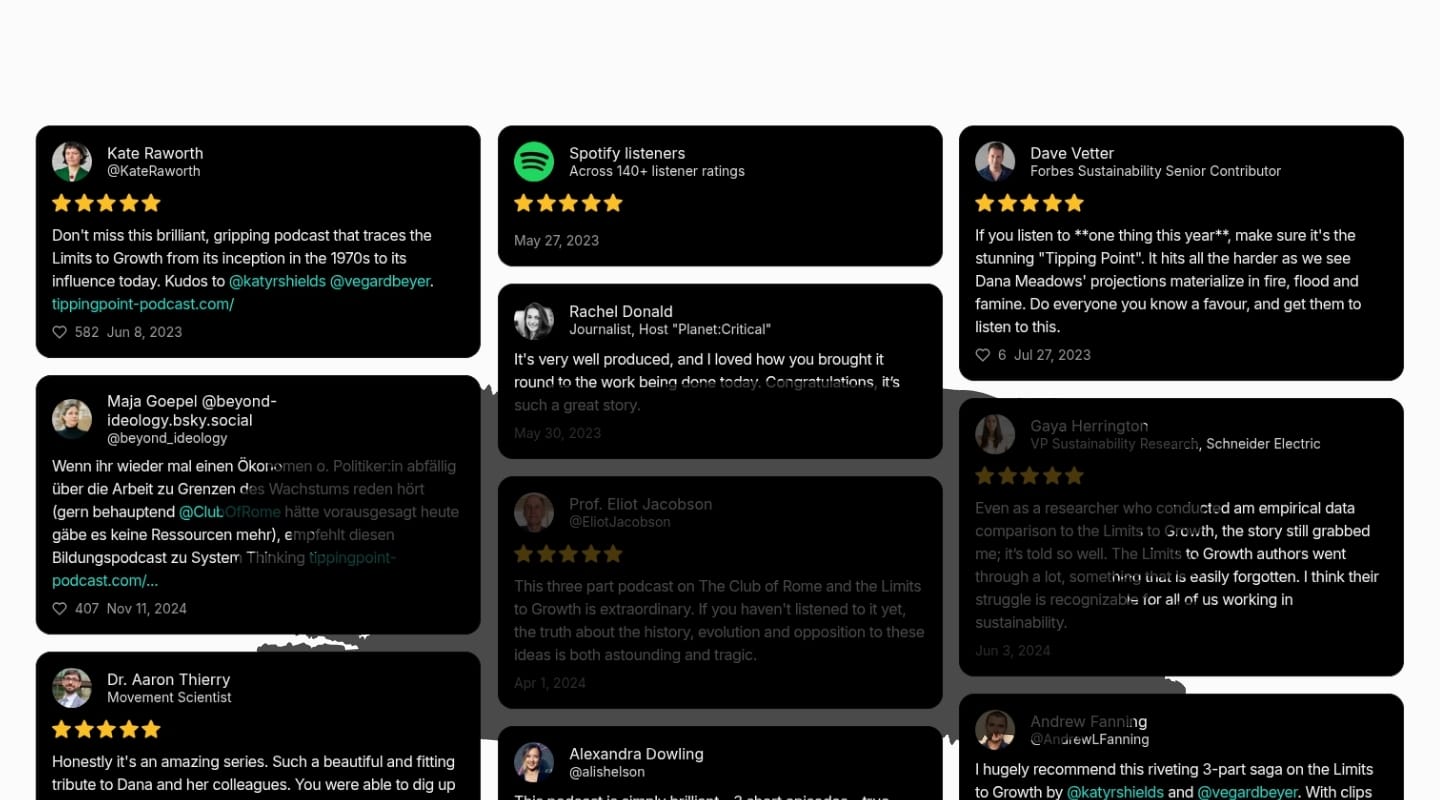 Part 3 takes a deep dive into how the researchers navigated the aftermath of their seminal publication, including their second attempt to warn the world in the 1990s, and track the post-2000 resurgence of interest in their work against the backdrop of escalating environmental crises.